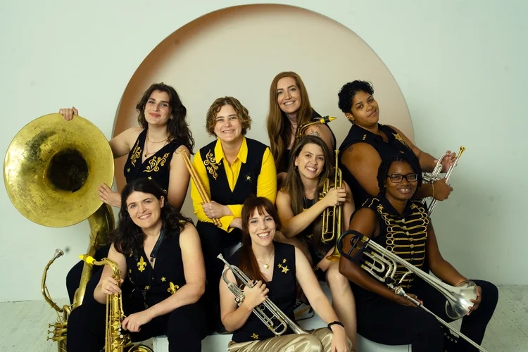 Brass Queens is a female-led, New York-based brass band that has been dominating the brass band scene since 2019. Finding that they shared similar frustrations about the emerging brass band scene in New York City, co-founders Alex Harris and Ally Chapel came together to form a group dedicated to showcasing the talents of female musicians in a landscape that was dominated by male musicians and bandleaders. After debuting in March 2019, Brass Queens grew to be a fixture in the local music scene and was dubbed "the hardest working band in town" by their peers. The Queens gained a dedicated following through outdoor performances on the streets of Brooklyn and playing pop-up events in their community through the pandemic. Now, a core value of the band is to play for as many audiences as possible to increase the visibility of female musicians.