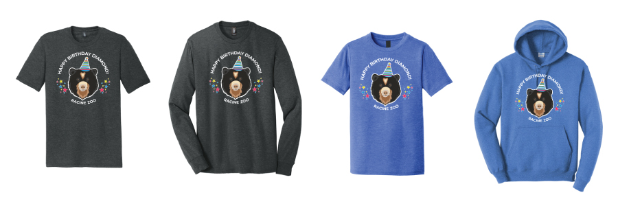 To further celebrate this special occasion, exclusive Diamond birthday apparel is also available! Multiple colors of shirts and sweatshirts are available in youth and adult sizes. Funds raised will help support the care of our animals.