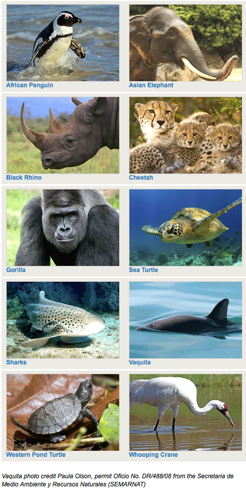In 2015, AZA SAFE will focus on 10 species: African penguins, Asian elephants, black rhinoceros, cheetahs, gorillas, sea turtles, sharks, vaquitas, Western pond turtles, and whooping cranes.